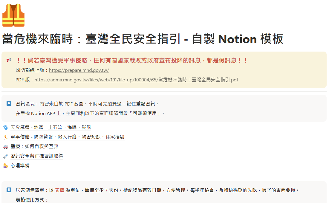 當危機來臨時:臺灣全民安全指引 - 自製 Notion 模板